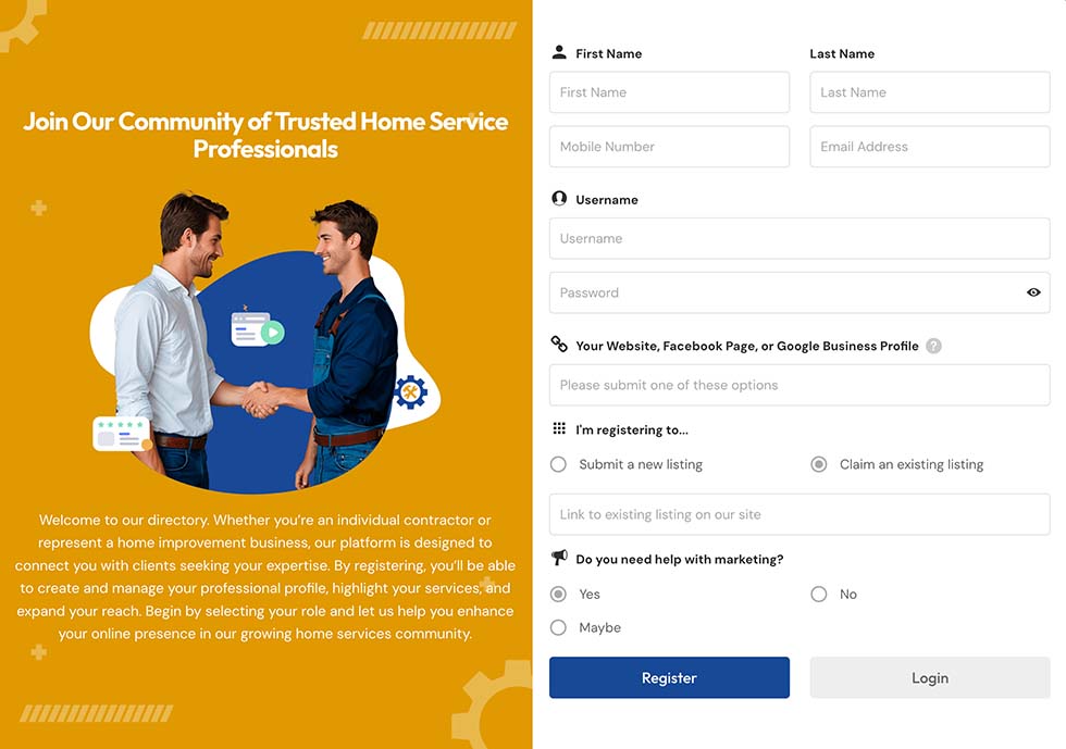 Welcome, valued business professionals, to your dedicated portal within our directory. Our mission is to connect your services with clients seeking trusted solutions across various industries. This portal is designed to support your journey with us, whether you’re registering your business or enhancing your existing profile.